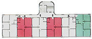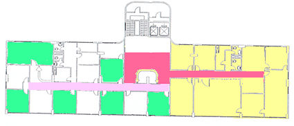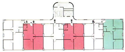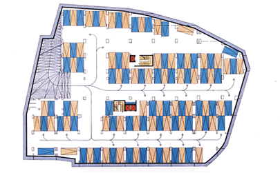 Designed as modules of 100 square meters, giving the possibility of office sizes multiples of 100 up to 600 square meters per floor.